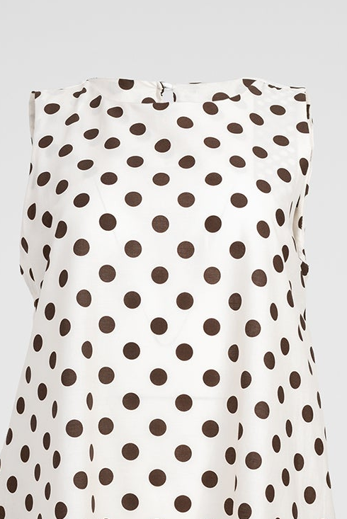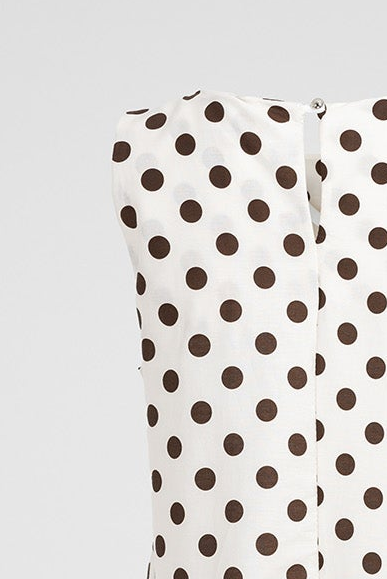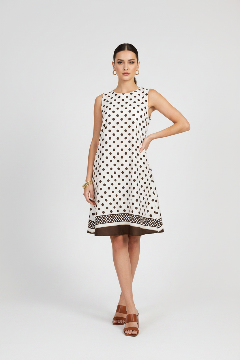 Beige Breeze е дамска рокля в бежово с кафяви точки и леко разкроена линия. Класическият принт носи ретро усещане, а свободната кройка осигурява удобство през целия ден.