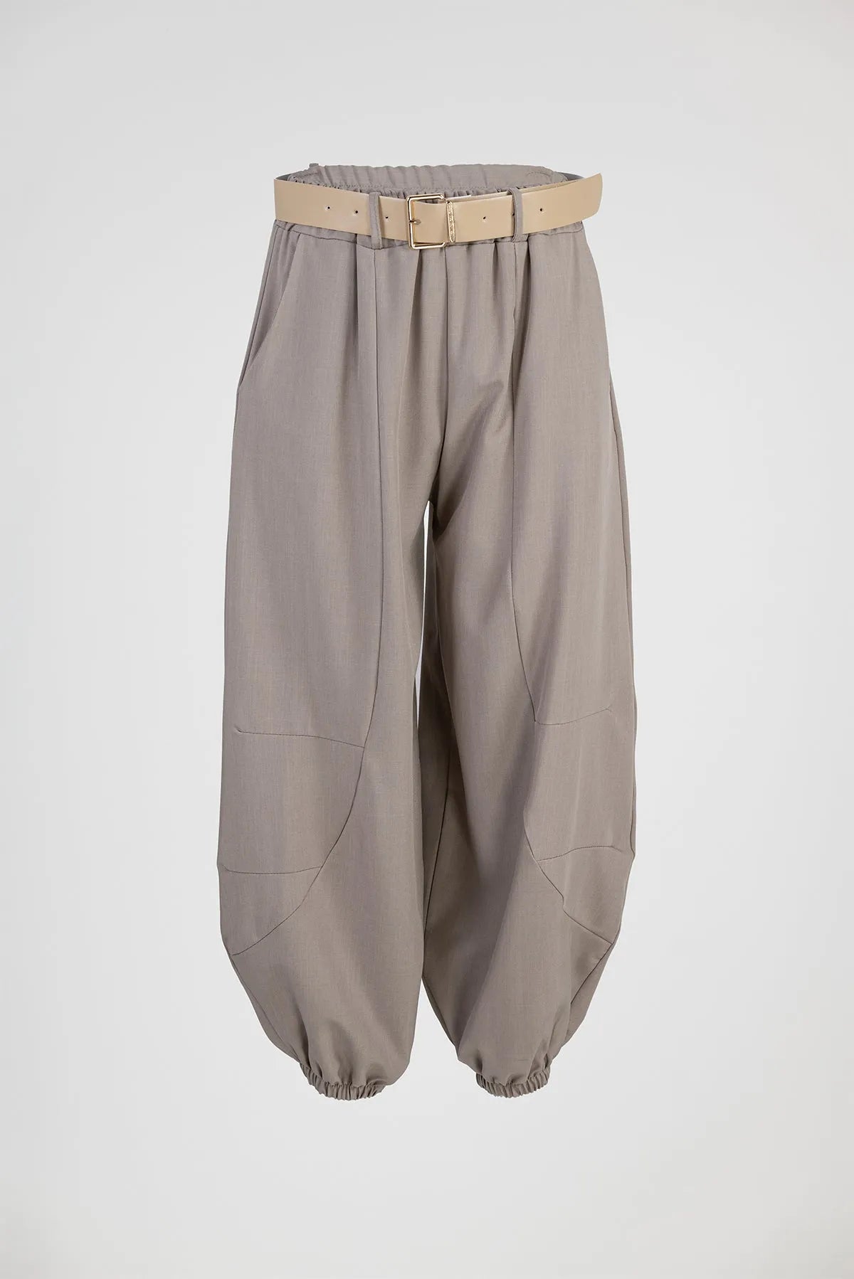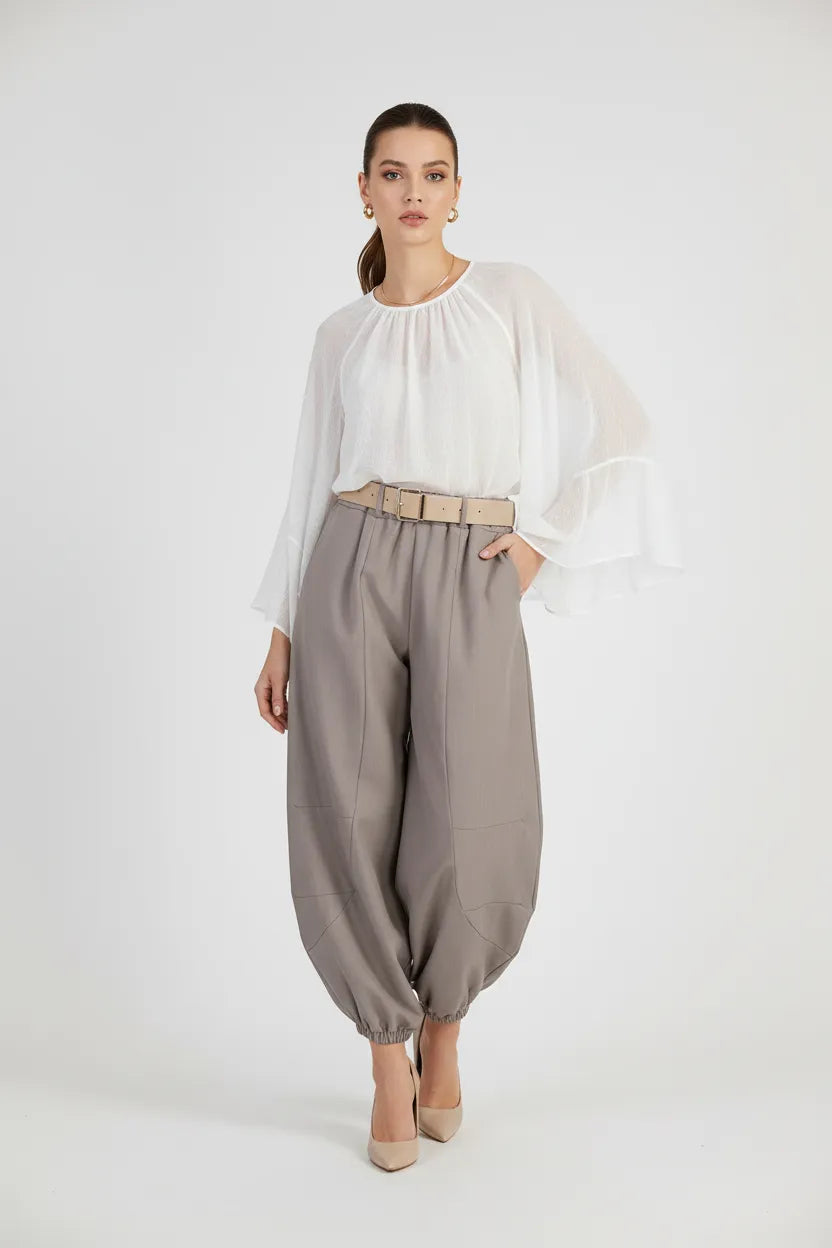 Дамски панталон тип харем с колан - Cappuccino Puff