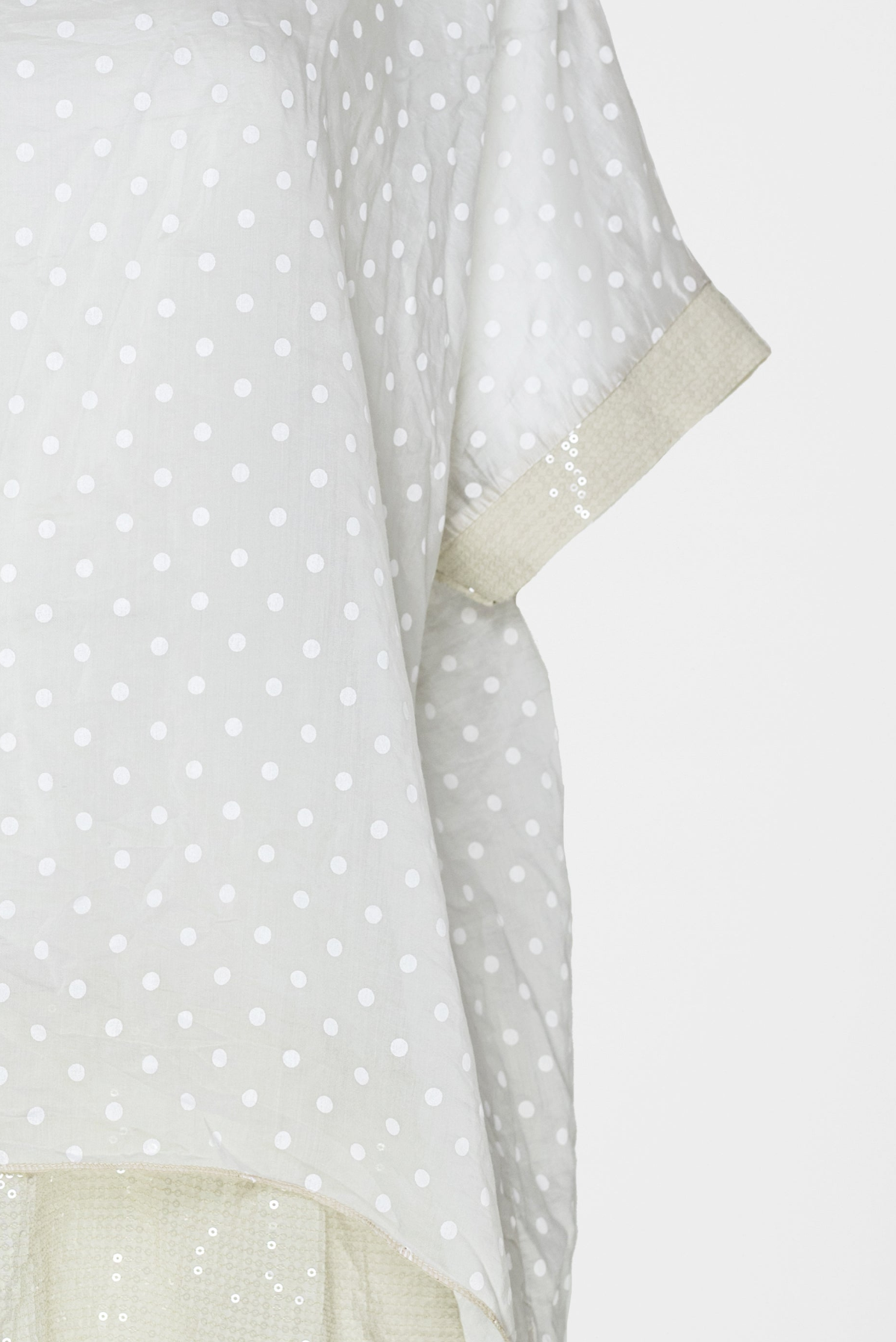 Ефирна бежова туника на бели точки с подплата - Dot Breeze