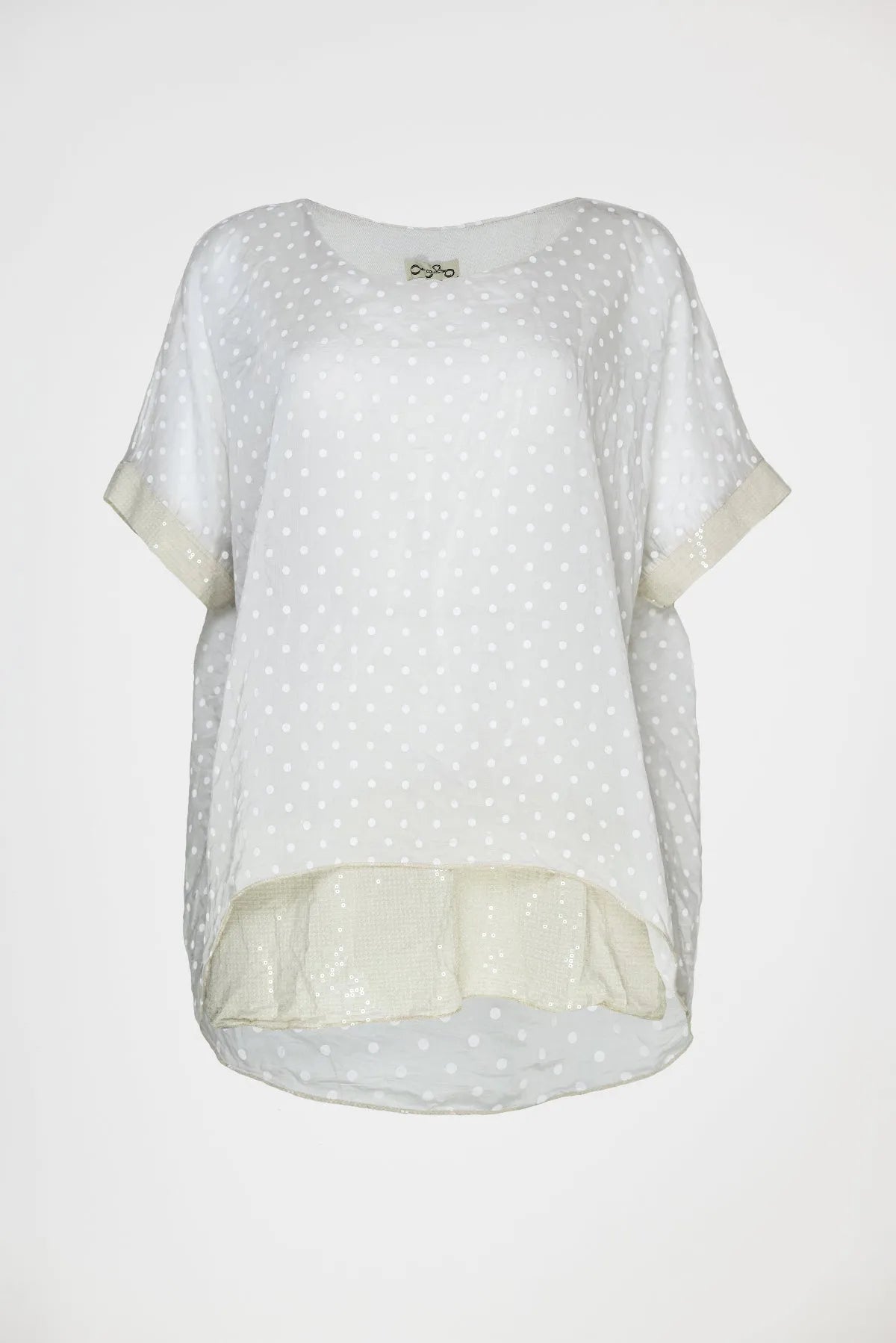 Ефирна бежова туника на бели точки с подплата - Dot Breeze