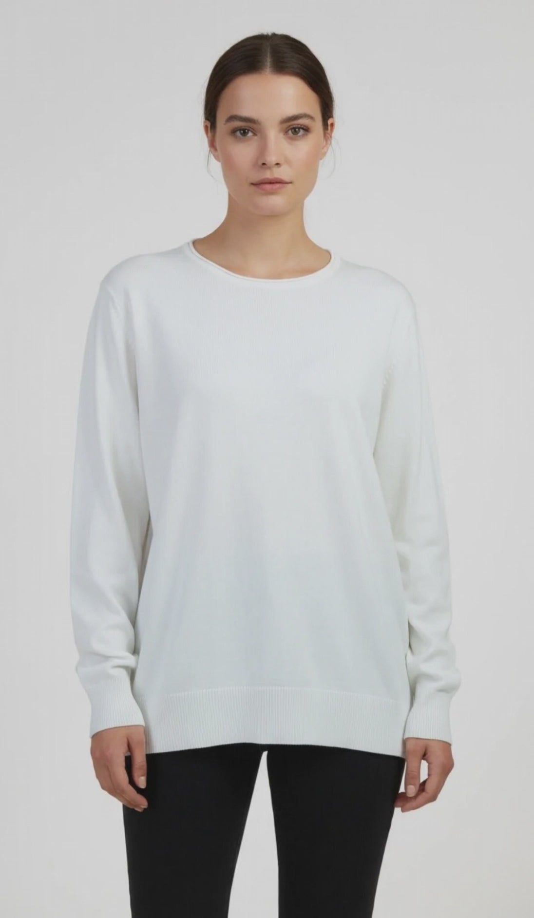 Essential Soft е дамски пуловер в чист бял цвят с фино плетиво и изчистен силует. Материята с вискоза и модал стои гладко върху тялото, без да добавя обем, и дава усещане за лекота и комфорт при целодневно носене. Белият тон подчертава свежото излъчване и прави модела лесен за съчетаване през всички сезони.