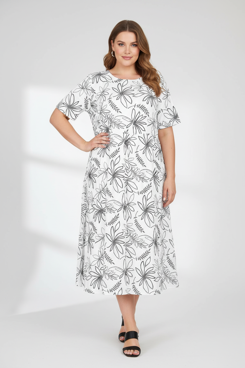 Дамска плюс сайз рокля с флорален принт - Flora Flow