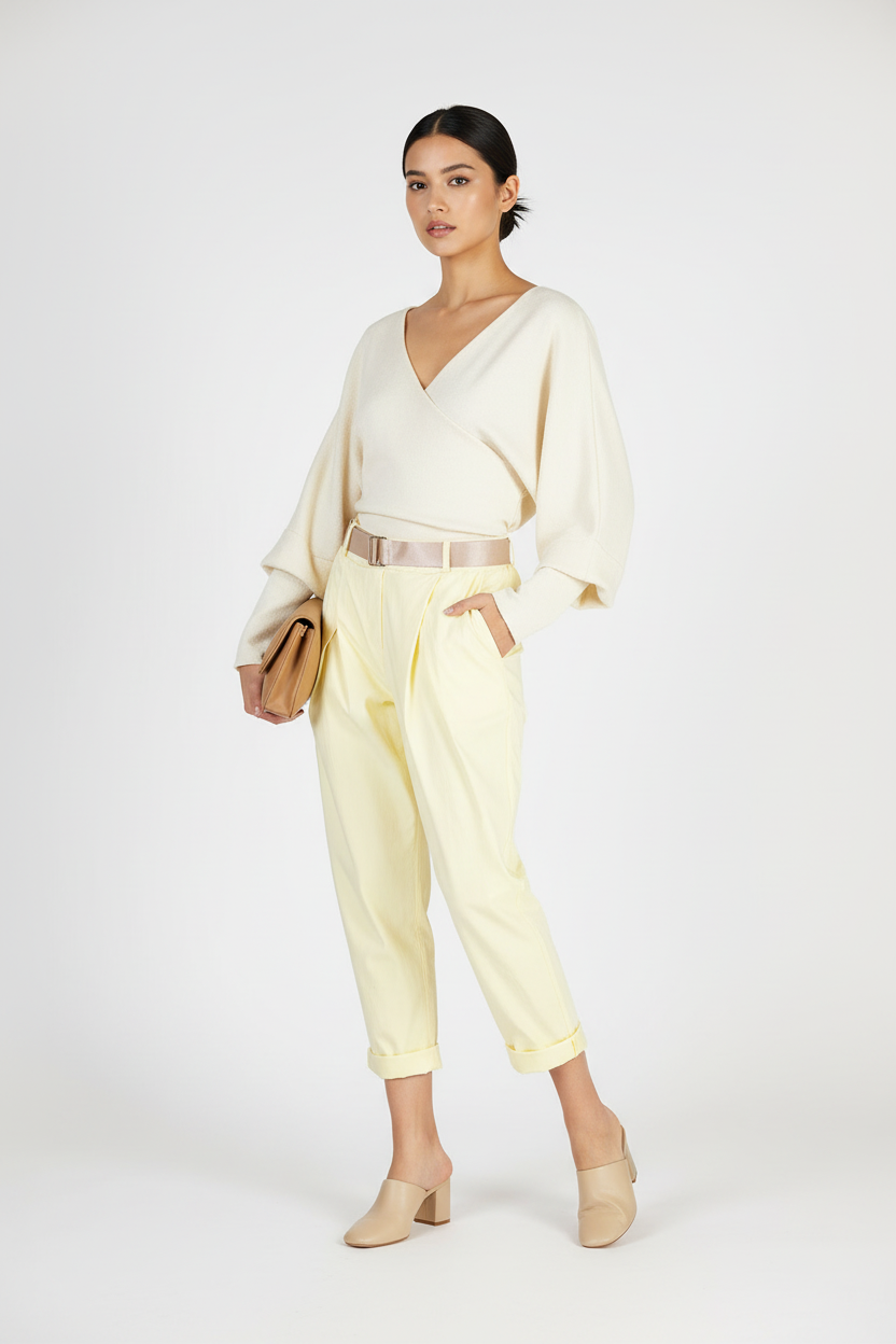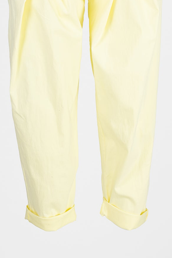 Lemon Breeze са дамски панталони в мек светложълт цвят с еластична талия и колан, които стоят спретнато и удобно през целия ден. Вискозата дава гладко усещане и лек пад, а еластанът добавя комфорт при движение. Подгъвът е с маншет, който завършва визията и подчертава обувките.