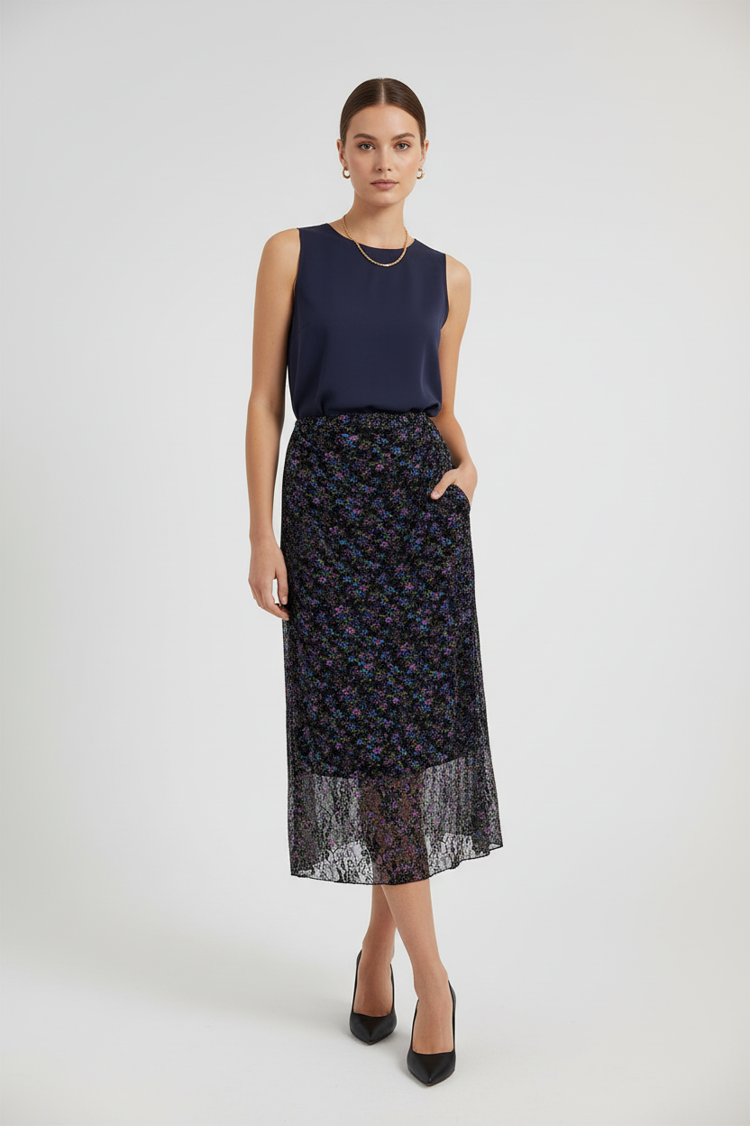 Тюлена миди пола с флорален принт - Midnight Flower