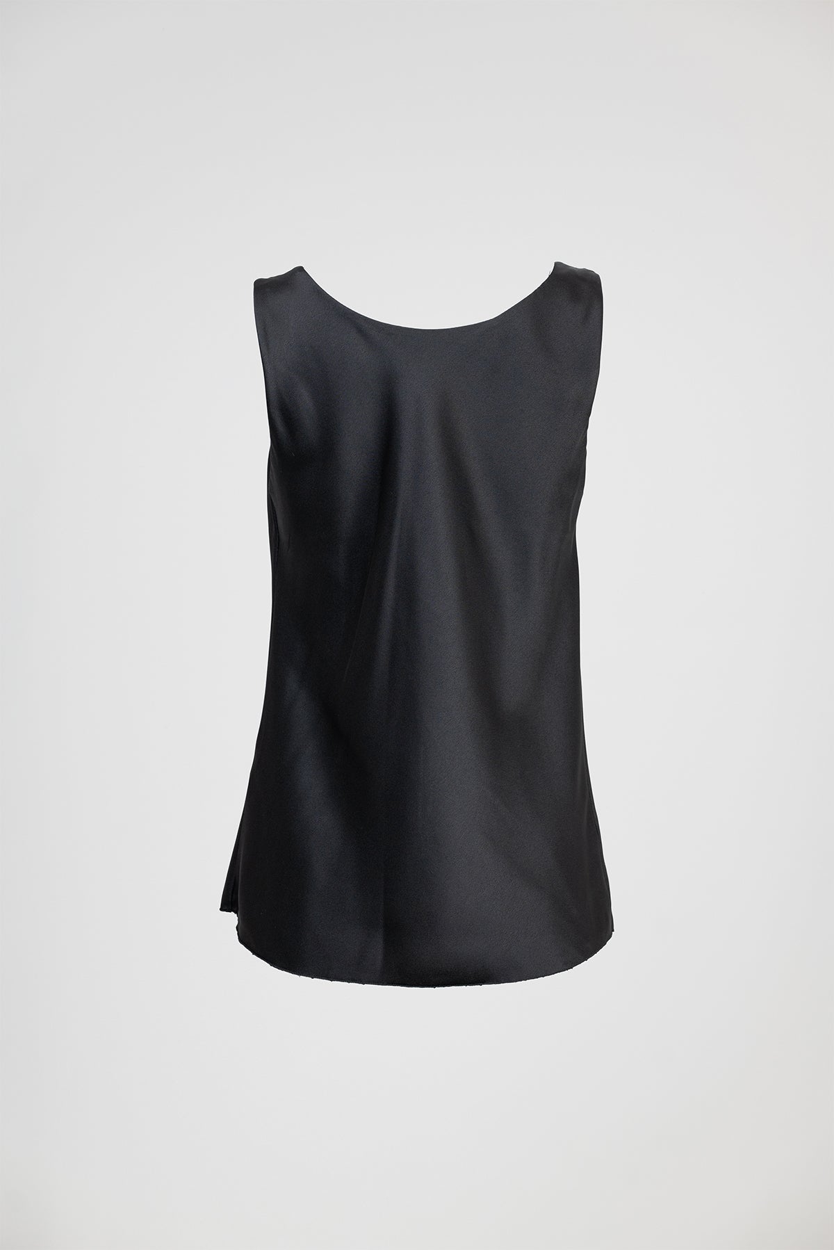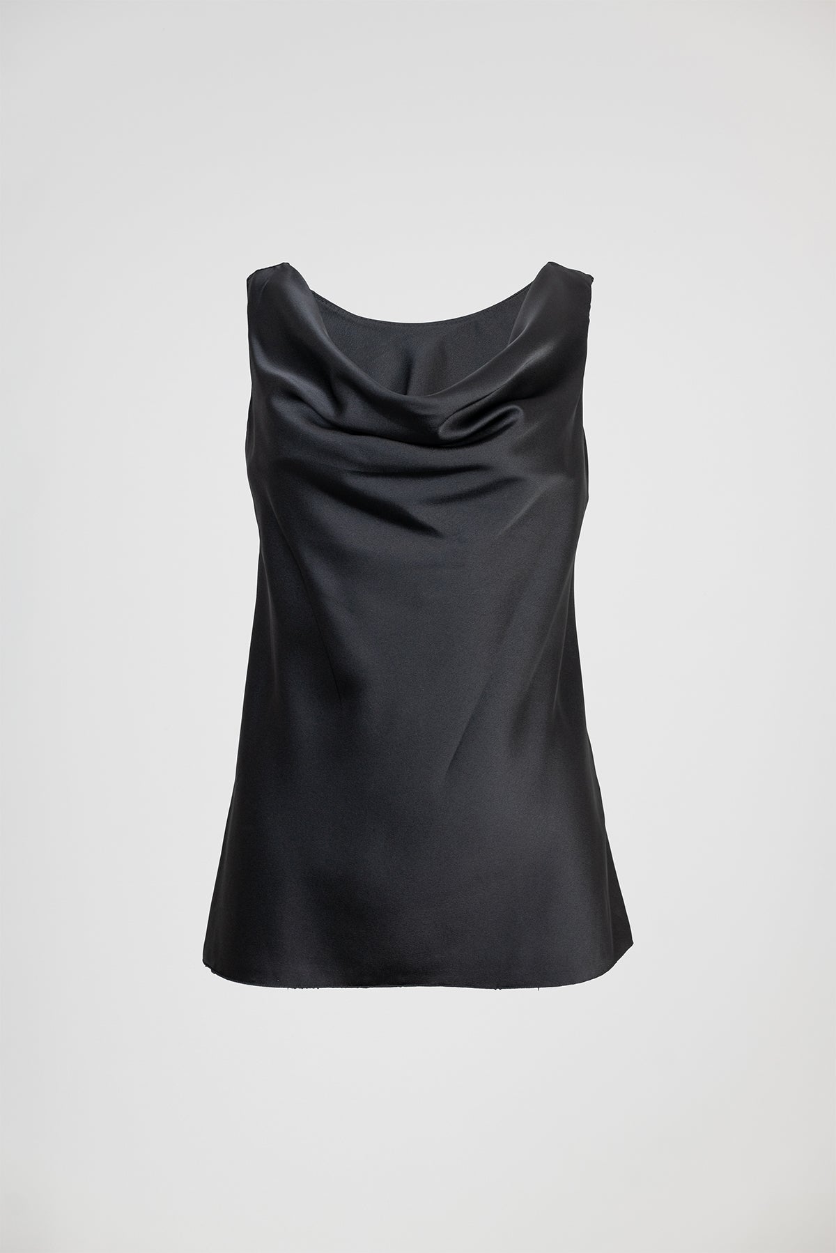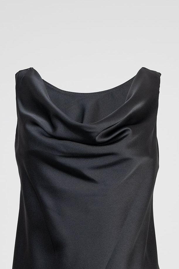Черен сатенен топ с падащо деколте и изчистена линия - Midnight Silk