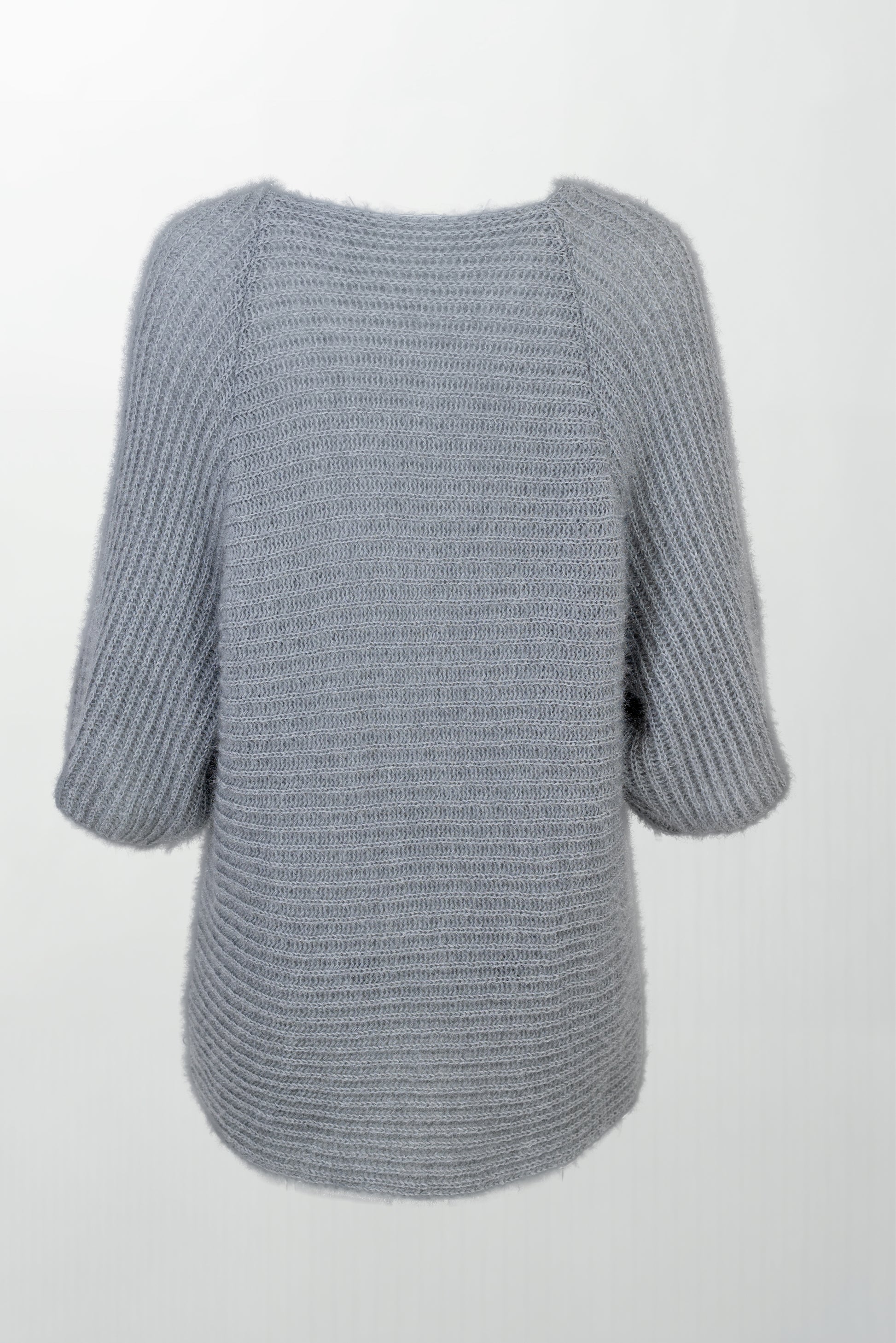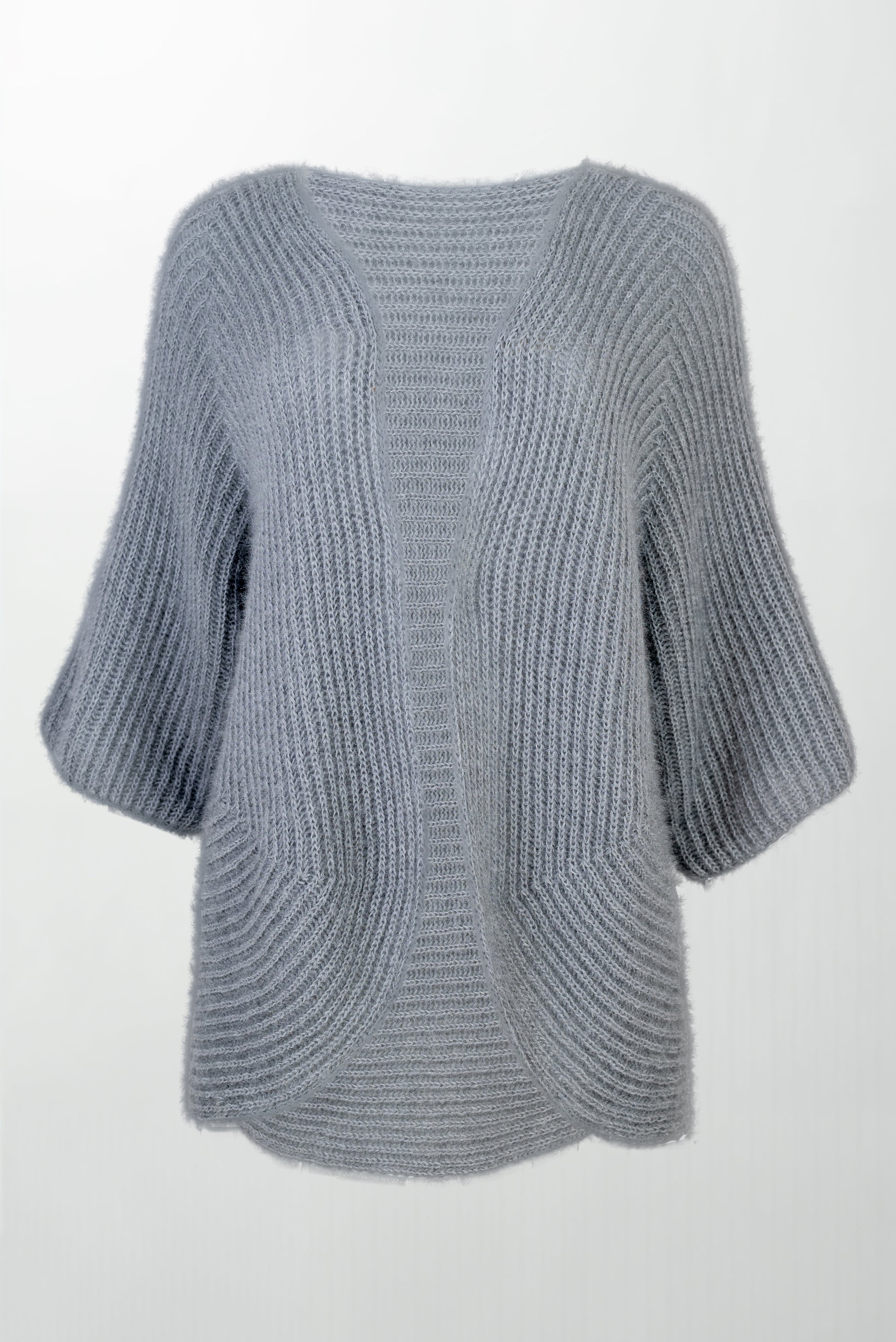 Кройка: свободна, без закопчаване, дължина до ханша Стил: ежедневен, уютен, небрежно-елегантен Тип: плетена жилетка с ръкав 3/4 и мохеров ефект