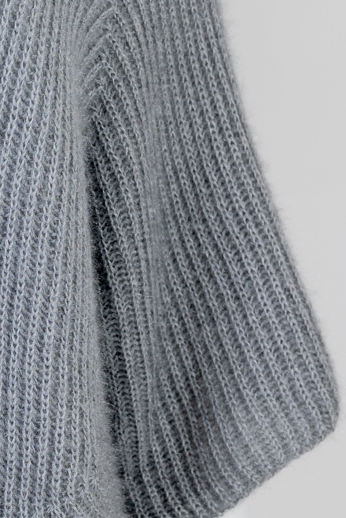Мека жилетка с мохеров ефект в светлосив нюанс. Плетката е въздушна и пухкава, пада свободно по тялото и осигурява топлина без тежест. Моделът е без закопчаване, със спокойна линия и леко скосени подгъви за красиво падане.