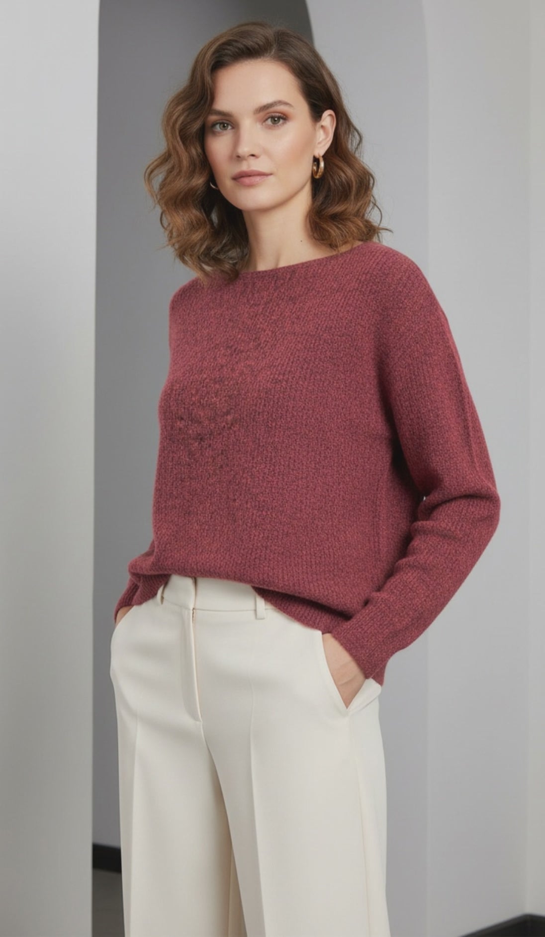 Soft Rib Classic е дамски пуловер с изчистена линия и фина плетка в елегантен керемиден меланж. Цветът придава дълбочина и завършеност на визията и стои еднакво добре в ежедневни и офис комбинации. Моделът е създаден за комфортно носене без утежняване на силуета.