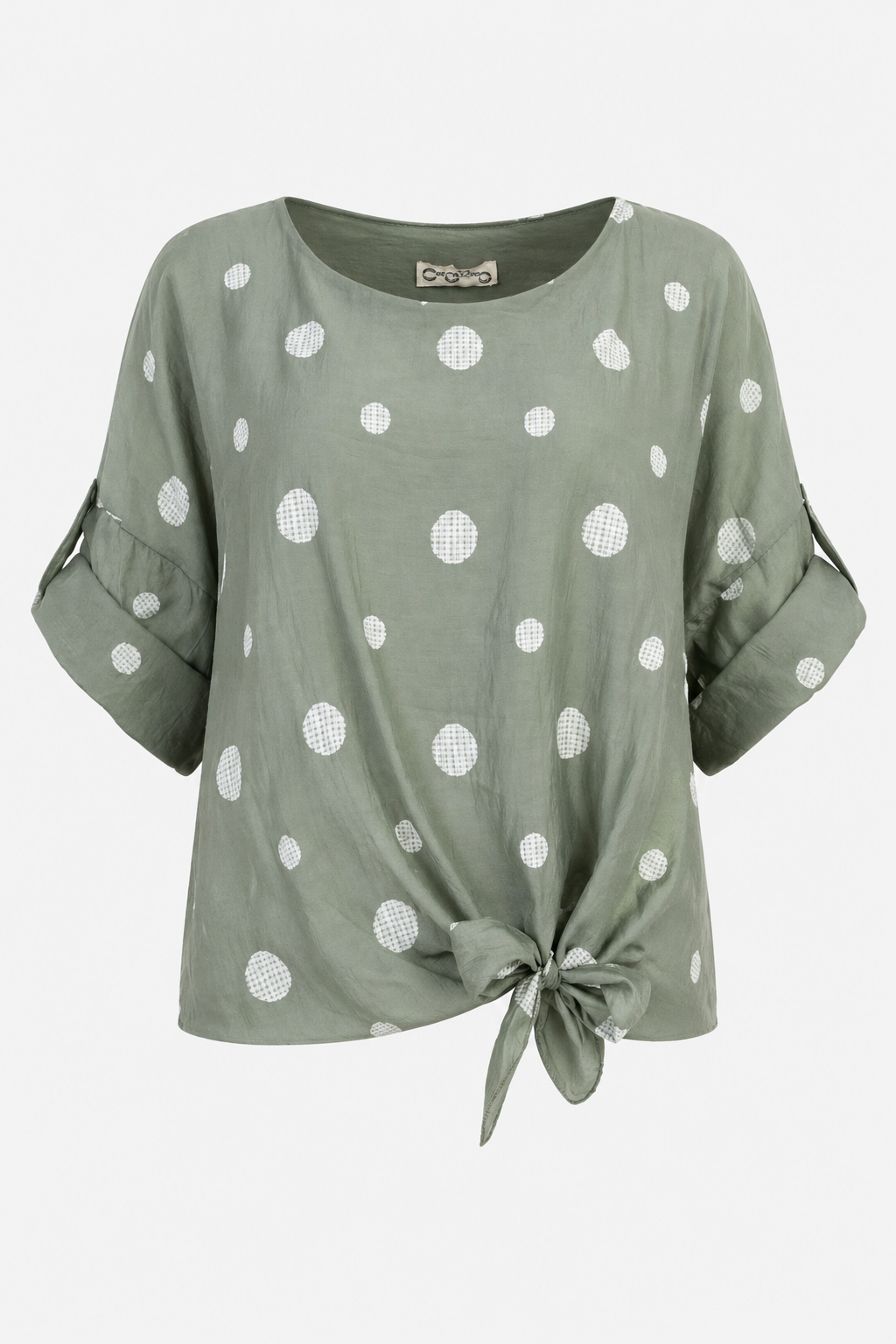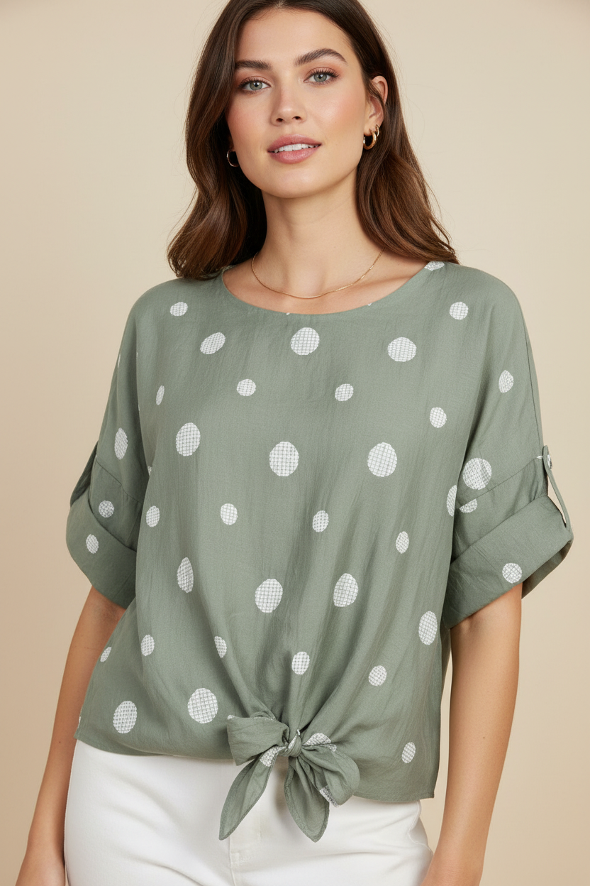 Дамска блуза с връзка и десен на точки от тенсел – Summer Dot