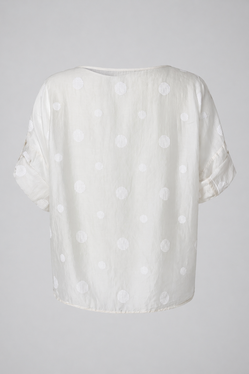 Summer Dots е дамска блуза с лек силует и свеж десен на точки. Връзката отпред ти дава контрол върху формата и създава по-женствена линия. Свободната кройка стои леко и не ограничава движението.