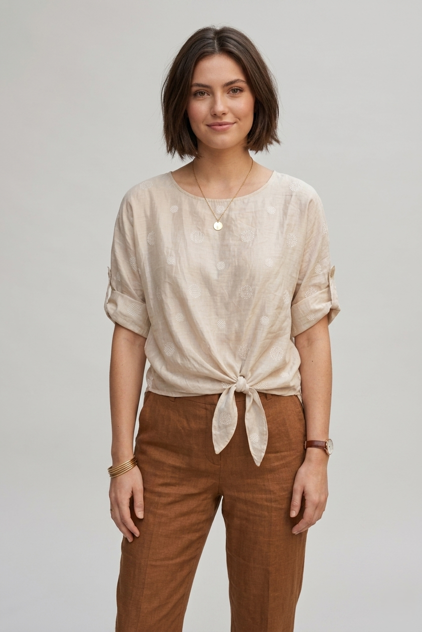 Дамска блуза с връзка и десен на точки от тенсел – Summer Dot