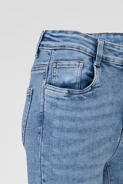 Комбинацията е еднакво добра за ежедневие и за по-спретната визия. Връзването отпред дава форма на талията, а еластичният деним пази комфорта при движение.