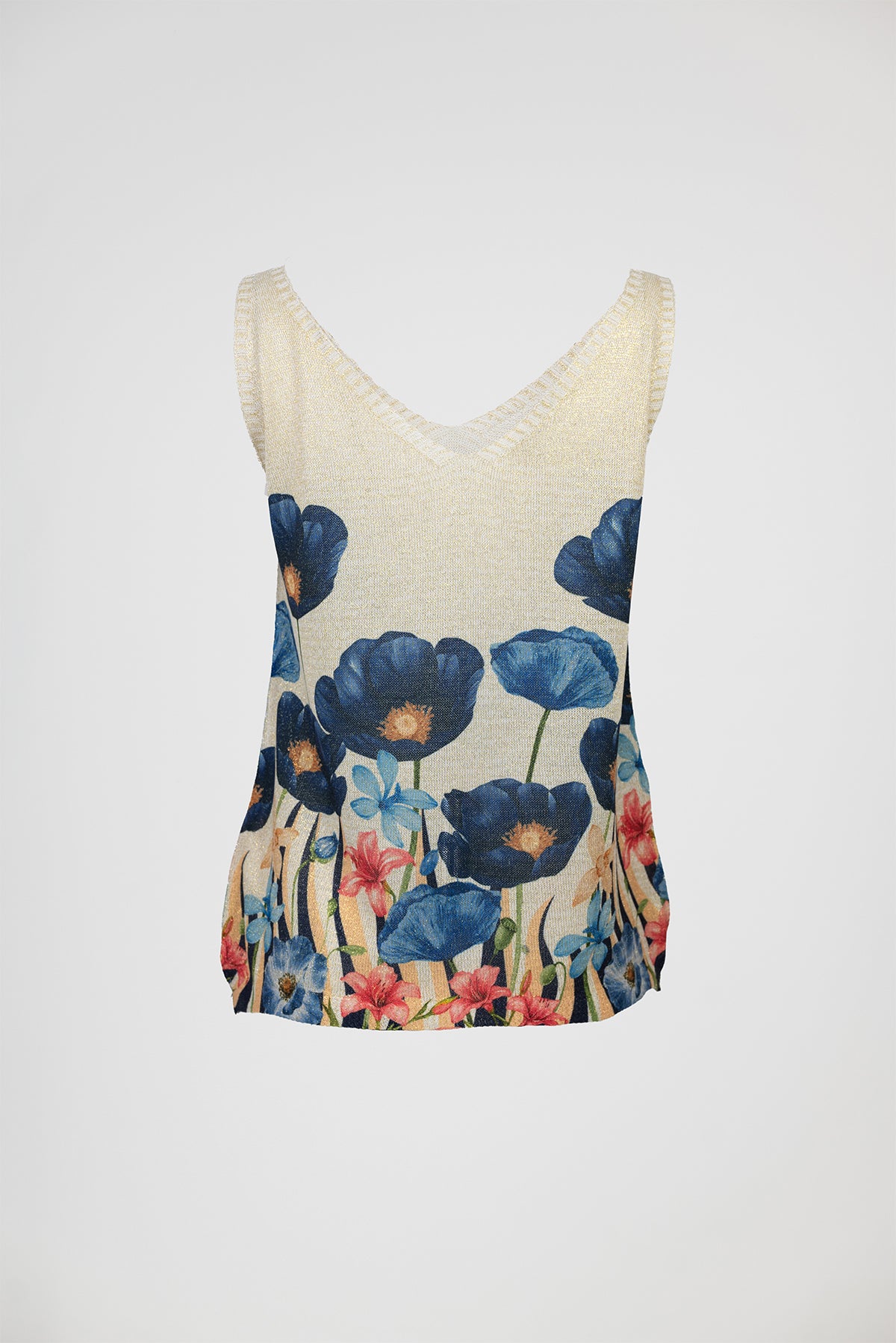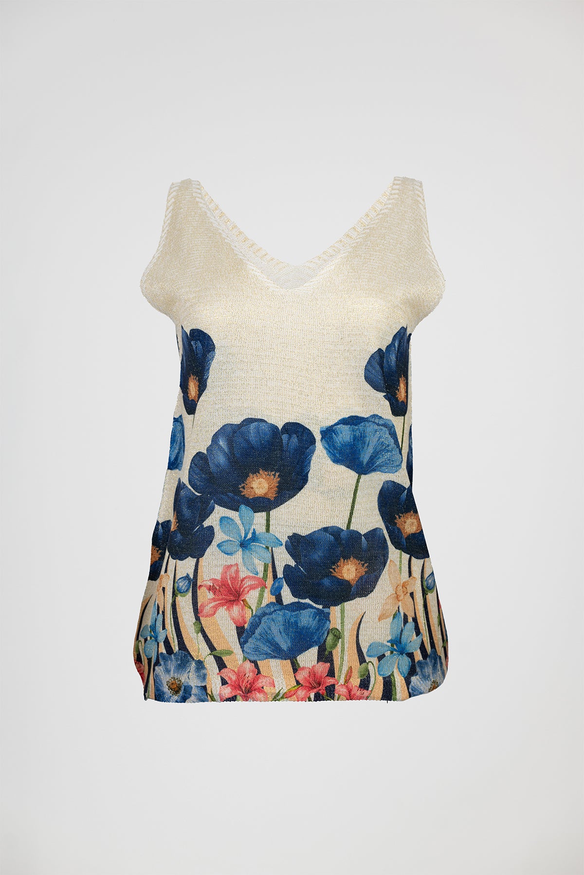 Дамски топ с флорален принт и V-образно деколте – Blue Garden