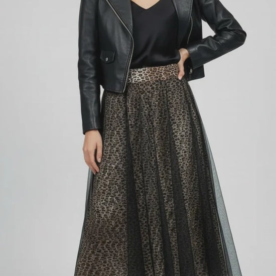 Wild Leopard Tulle е дълга, ефирна тюлена пола с леопардов принт . Вътрешният слой е непрозрачен и дава комфорт и покритие, а фината мрежа създава движение при всяка стъпка. Универсален модел, който лесно се адаптира и за по-ежедневни, и за вечерни визии.